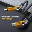 Our cable doesn't just perform—it makes a statement. Featuring an innovative design with a sleek black nylon braided body accented by distinctive yellow/gold connectors, the TitanLink combines rugged durability with modern aesthetics. The seamless blend of soft inner sheath and tough outer guardrails gives you an unmatched durability that's built to last while looking premium on any desk or workspace.