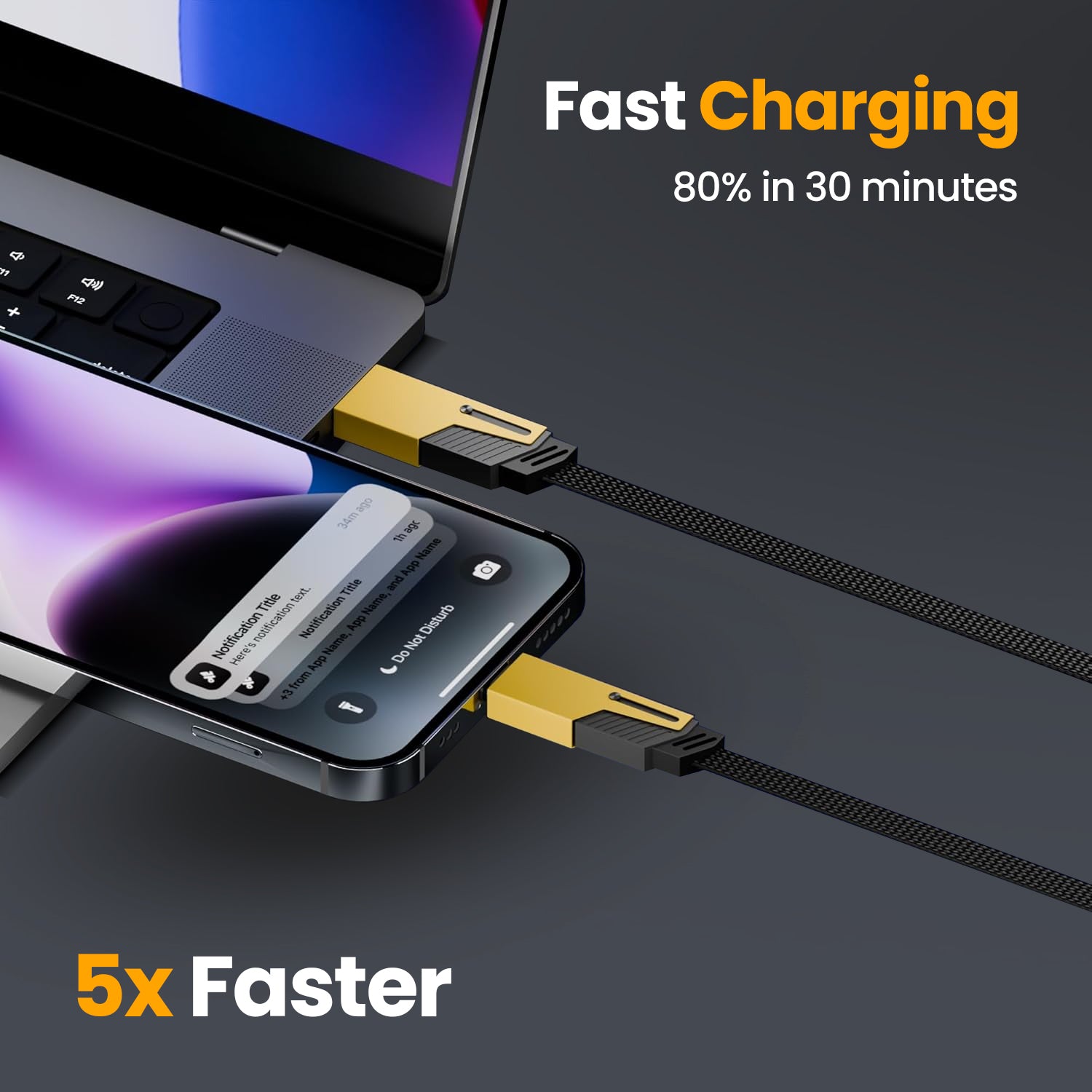 Experience lightning-fast power delivery with up to 120W total output. While ordinary Type-C cables struggle to reach 20% in the same timeframe, the ArmourGuards TitanLink accelerates your device to 60% battery life—3x faster charging that gets you powered up and ready to go. Perfect for charging laptops, tablets, and smartphones simultaneously with rapid efficiency.