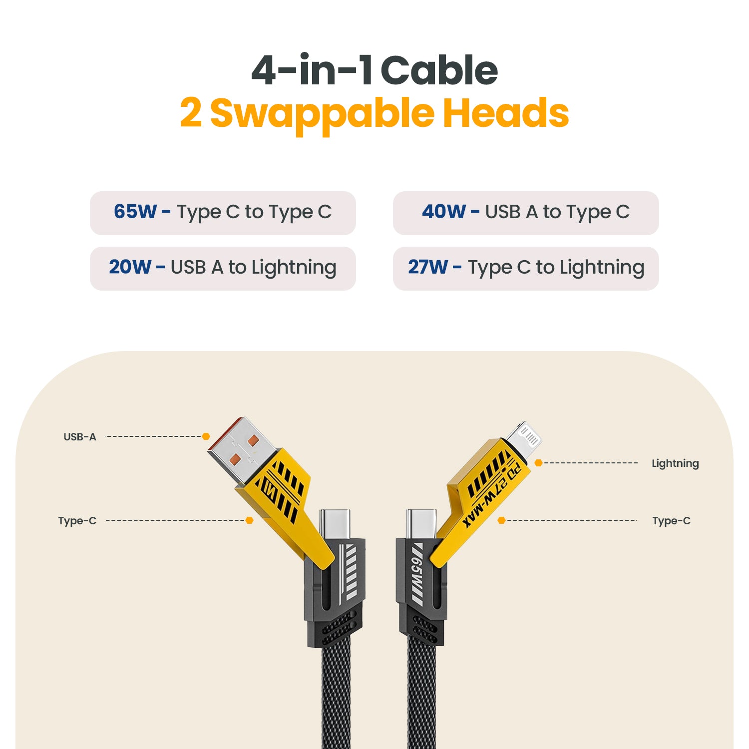 Our cable effectively consolidates four essential charging connections into one powerful solution:
